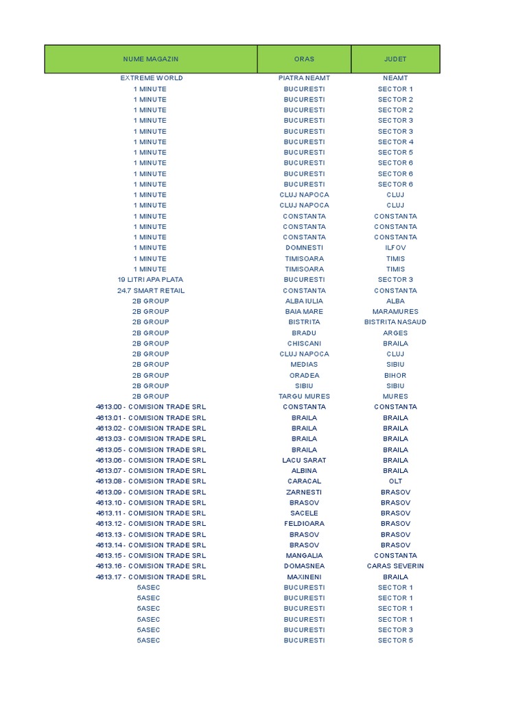 Locatii Magazine Partenere Bonus Card Ro 1 Xls Southeastern Europe Romania