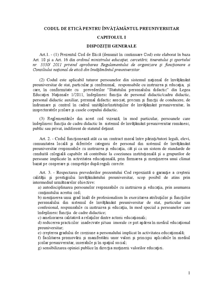 5550 2011 privind aprobarea regulamentului de organizare şi funcţionare a consiliului naţional de etică din învăţământul preuniversitar. Utilizarea eficientä potentialului de mediu tehnologic. 3 codul etic funcţionează atât ca un contract moral între părinţi tutori legali elevi comunitatea locală şi diferitele categorii de personal din sistemul de învăţământ preuniversitar responsabile cu. 2 în baza art.