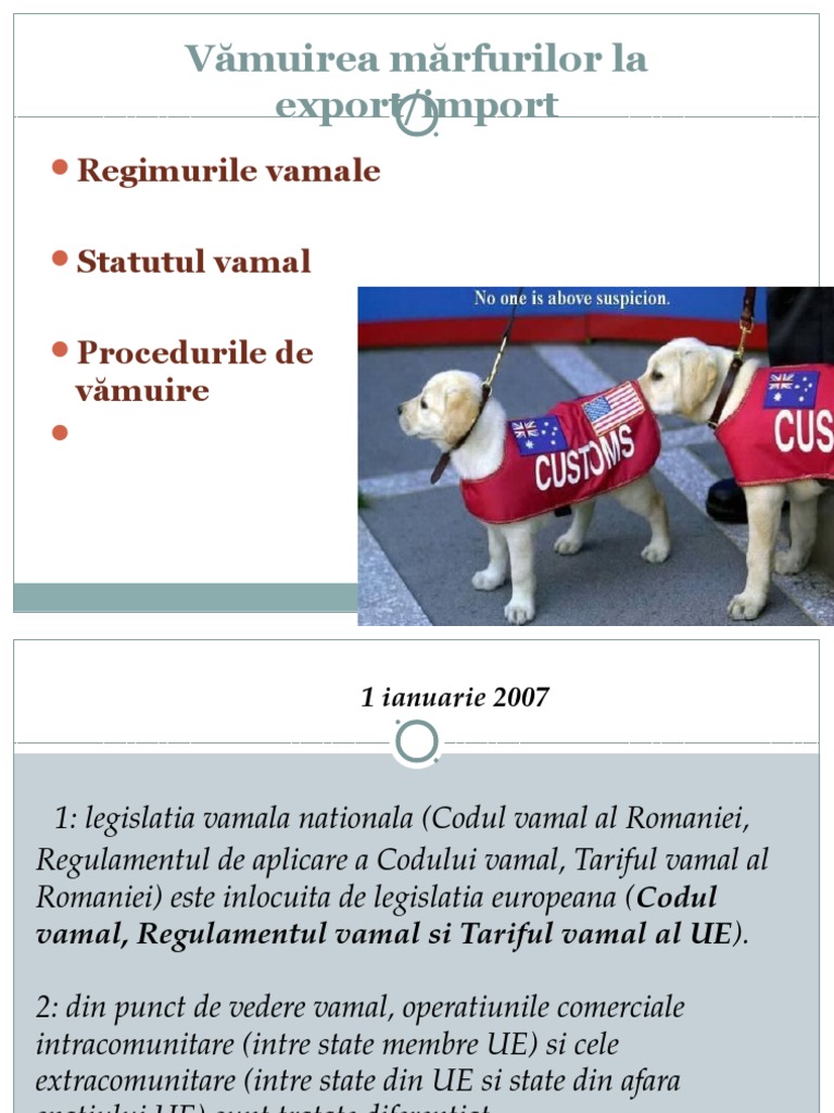 1 reglementãrile vamale cuprind prezentul cod regulamentul de aplicare a acestuia precum si alte acte normative care contin prevederi referitoare la domeniul vamal. Trebuie să fie prezentate înainte de a ieşi de pe teritoriul vamal al. Codul vamal al romaniei.