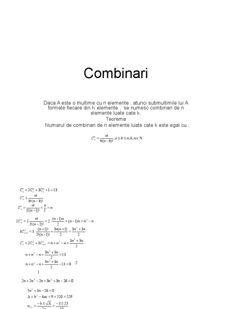 Formule Matematica Elemente De Combinatorica Combinari Definitie