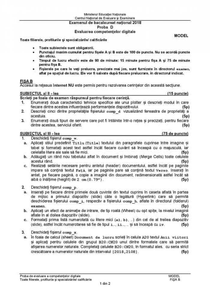 Model de subiect bacalaureat 2015 competente lingvistice limba engleza proba c. Ministerul educaţiei a dat publicităţii odată cu publicarea unui modelul de subiecte la această probă şi un barem. Examenele încep în fevarie conforme calendarului la bacalaureat 2018 proba orală de competenţe digitale se desfăşoară în zilele de 16 19 şi 20 fevarie. Ministerul educaţiei a dat publicităţii modelele de subiecte pentru examenul de bacalaureat din februarie.