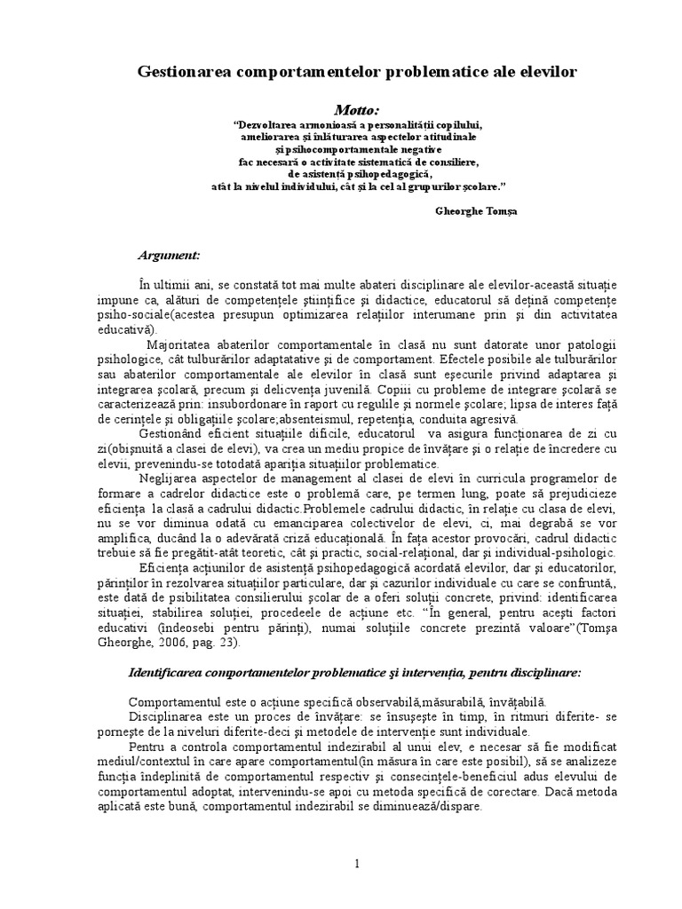 Gestionarea Comportamentelor Problematice Ale Elevilor