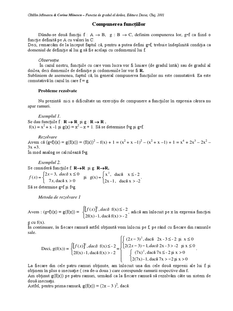 Compunerea a doua functii. Lectii video matematica clasa a 9 a functii functii compunerea a doua functii definitii functii compunerea a doua functii definitii trebuie sa te inregistrezi pentru a putea vedea acest continut. Fiea a b c trei multimi nevide si doua functii. Compunerea functiilor este foarte important sa intelegeti compunerea functiilor deoarece o sa mai avem de efectuat si alte exercitii cu compunerea functiilor. Codomeniul lui f este egal cu domeniul lui g.