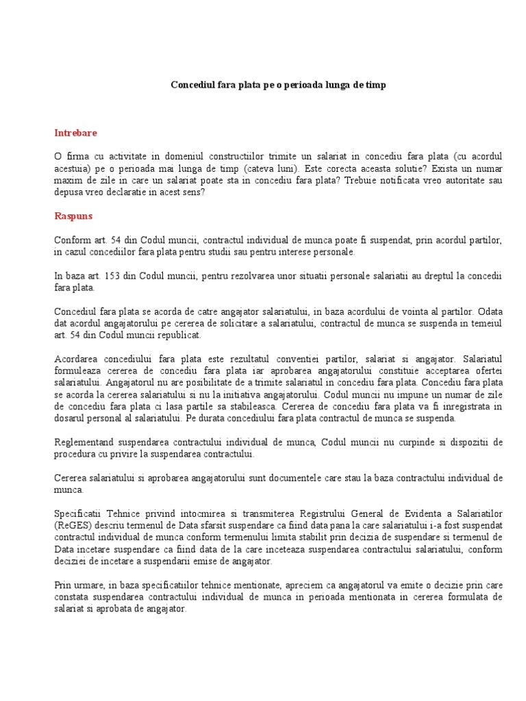 Concediul Fără Plată In Romania Intrebări și Răspunsuri Punctuale