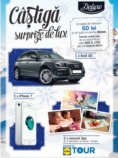Concurs lidl deluxe 2019. 10x iphone xs 256 g. Favorina craciun 2019 casa lidl. Codul numeric unic poate fi găsit în partea de jos a bonului fiscal. Cumpăra de minim 60 de lei și cel puțin un produse deluxe înscrie codul unic prin sms la numărul 1812 tarif normal în rețelele orange vodafone telekom și digi sau folosind formularul de pe pagina de concurs.
