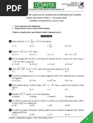 Concursul comper 2017 2018. Etapa i a concursului comper 2017 are loc pe 20 ianuarie la disciplina comunicare si pe 27 ianuarie la matematica. Timpul efectiv de lucru este de 50 de minute. 18 mai 2018 subiecte de concurs si bareme de corectare pentru etapa i matematica 26 ianuarie 2018 subiecte. Calendarul concursurilor nationale scolare fara finanatare men 2019 2020 pozitia 104.