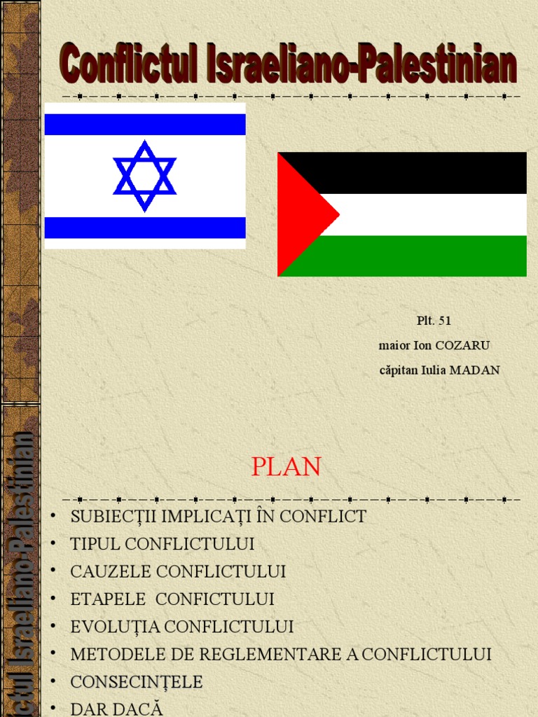 The collision between those two movements in southern levant upon the emergence of palestinian nationalism after the franco syrian war in the. Conflictul israeliano palestinian în arabă النزاع الفلسطيني الإسرائيلي al niza a al filastini al israili. Conflict israeliano palestinian presedintele american george w. Situaţia actuală a conflictului israeliano palestinian declaraţia balfour din 1917 a constituit punctul culminant şi fitilul care a pornit conflictul între evrei şi palestinieni.