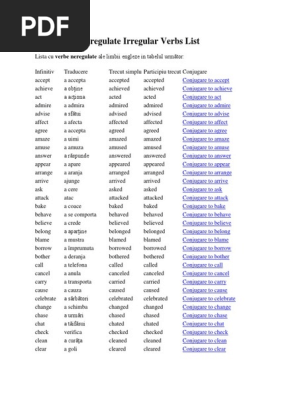 Lista Verbelor Regulate