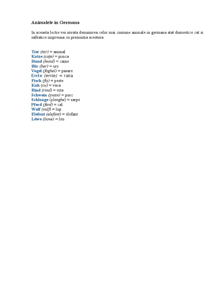 Animalele In Germana