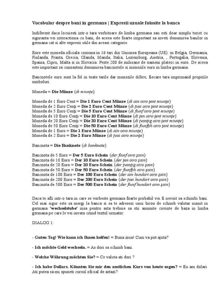 Vocabular Despre Bani In Germana Expresii Uzuale Folosite La Banca Doc