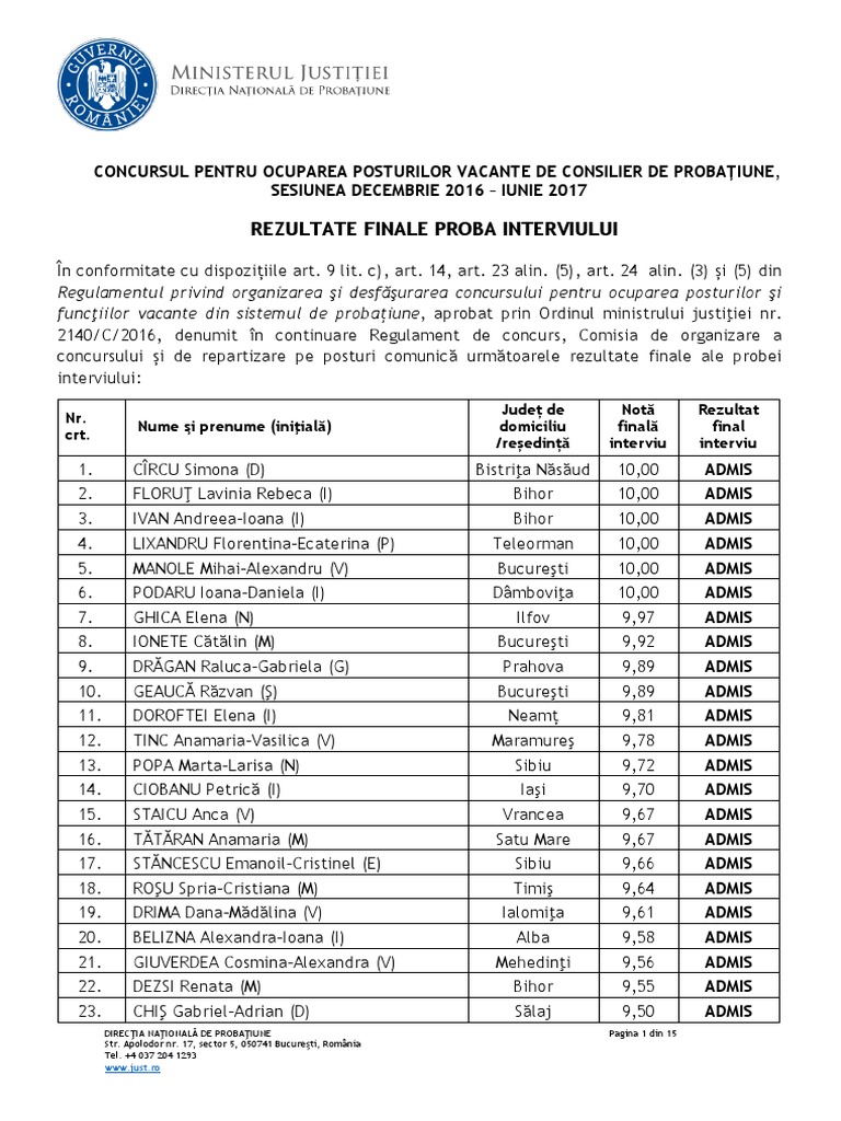 Consilier de probatiune 2017. Salarii de bază pentru personalul de probațiune anexa nr. Direcția națională de probațiune organizează concursul pentru ocuparea posturilor vacante de consilier de probațiune 29 decembrie 2016 21 decembrie 2017 admin 2 posturi vacante anunțul privind organizarea concursului pentru ocuparea posturilor vacante de consilier de probațiune sesiunea decembrie 2016 iunie 2017. 2017 concursul pentru ocuparea a 187 de posturi vacante de consilier de probatiune din cadrul serviciilor de probatiune repartizate dupä cum urmeazä. Serviciul de probaçiune alba 8 posturi vacante dintre care 3 posturi vacante începând.