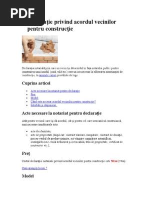 Declarație Privind Acordul Vecinilor Pentru Construcție