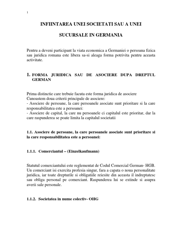 Doc Cadrul Legal Existent In Germania Pentru Asocierea De Persoane Si Sau Infiintarea Unor Firme Serj Serj Academia Edu