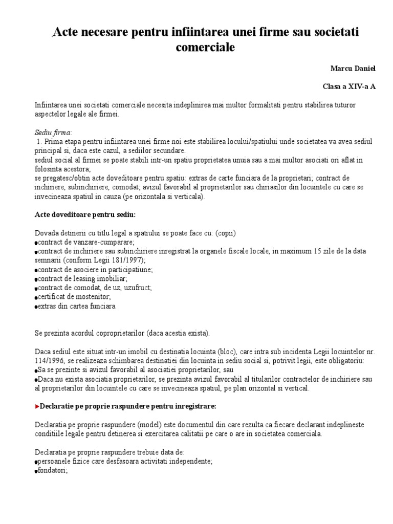 Acte Necesare Pentru Infiintarea Unei Firme Sau Societati Comerciale