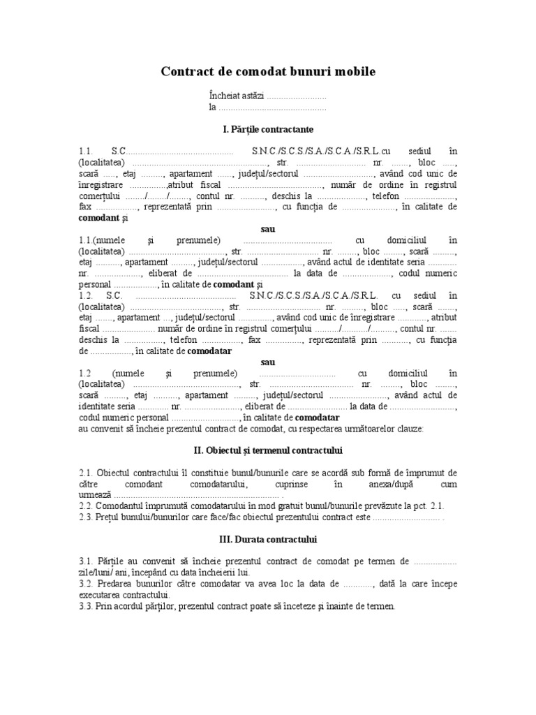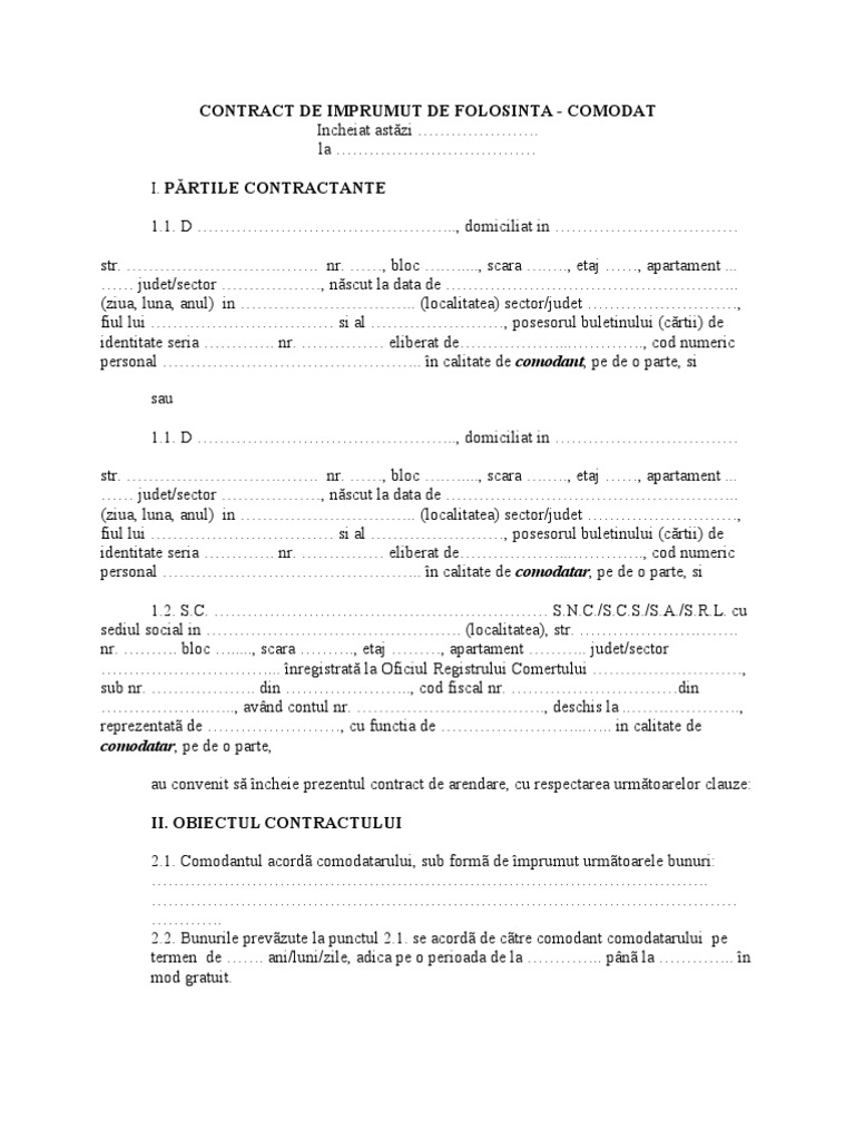 Model Contract De Comodat Locuinta Laurentiu Mihai