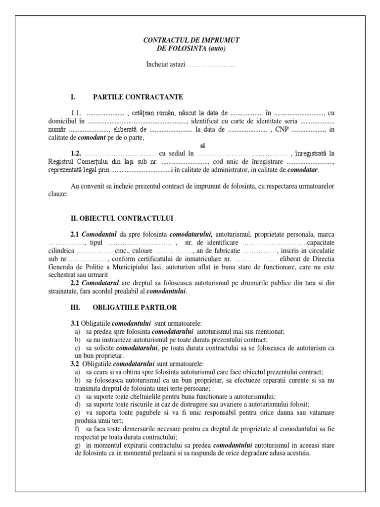 Model Contract Comodat Auto Pdf Document