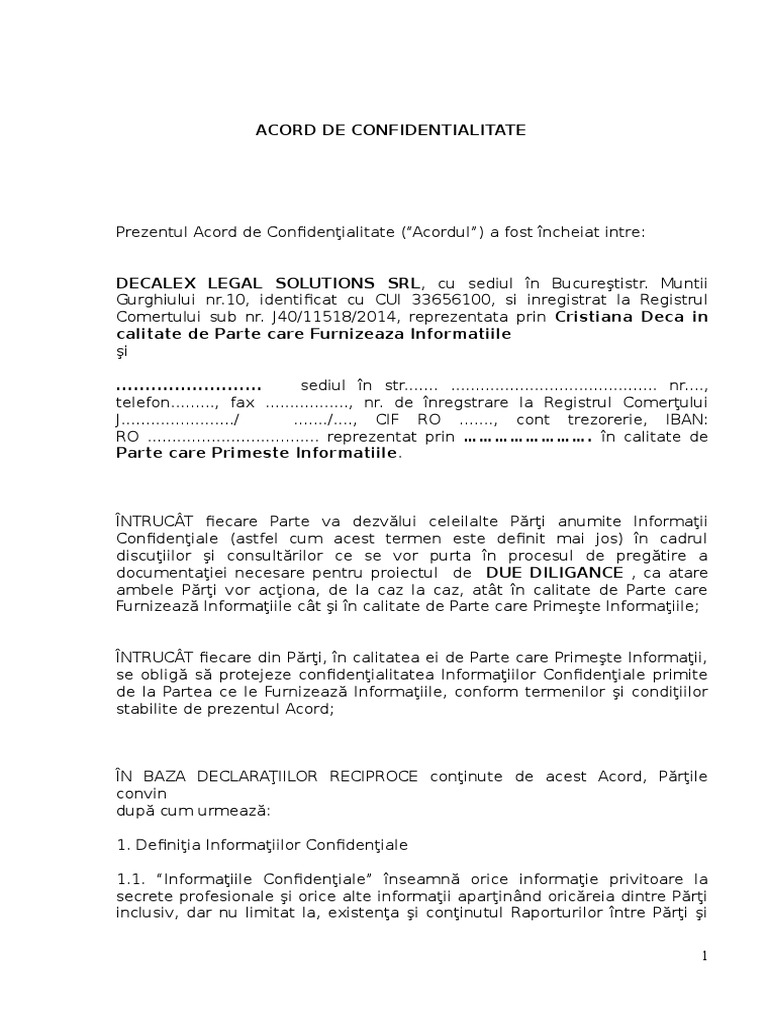 Obiectul contractului de confidentialitate il. Model contract de confidențialitate art. Contract de confidentialitate art 1 părtile contractante. Atentie la data valabilitatii intrebarii.