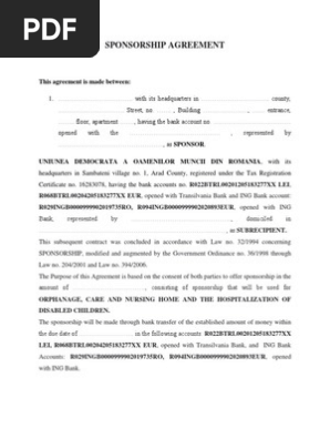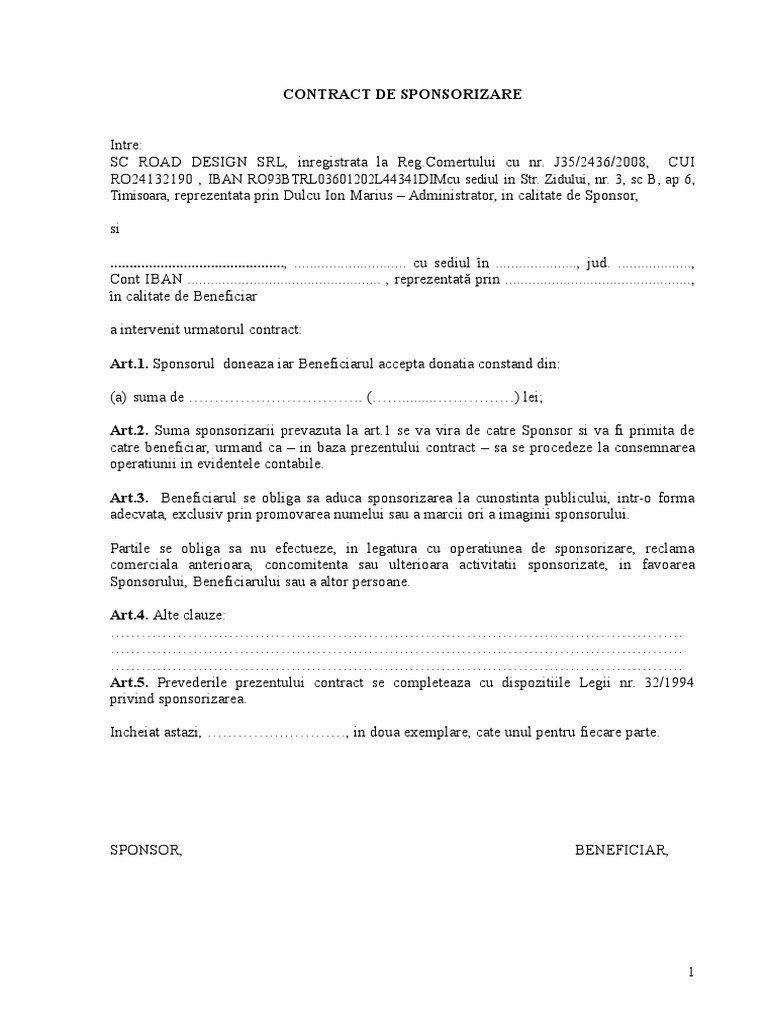 8 24 2018 12 15 00 pm company. Modele de contracte de sponsorizare contract de sponsorizare contract de sponsorizare 2 contract de. Poate beneficia de sponsorizare orice persoană juridică de utilitate publică cu sediul în românia care desfășoară sau urmează să desfășoare o activitate cu caracter direct umanitar filantropic cultural artistic educativ științific religios sportiv sau care este destinată protecției drepturilor omului și educației civice ori calității mediului înconjurător. Pentru inceput trebuie sa mentionam ca orice contract de sponsorizare trebuie sa fie incheiat in forma scrisa.