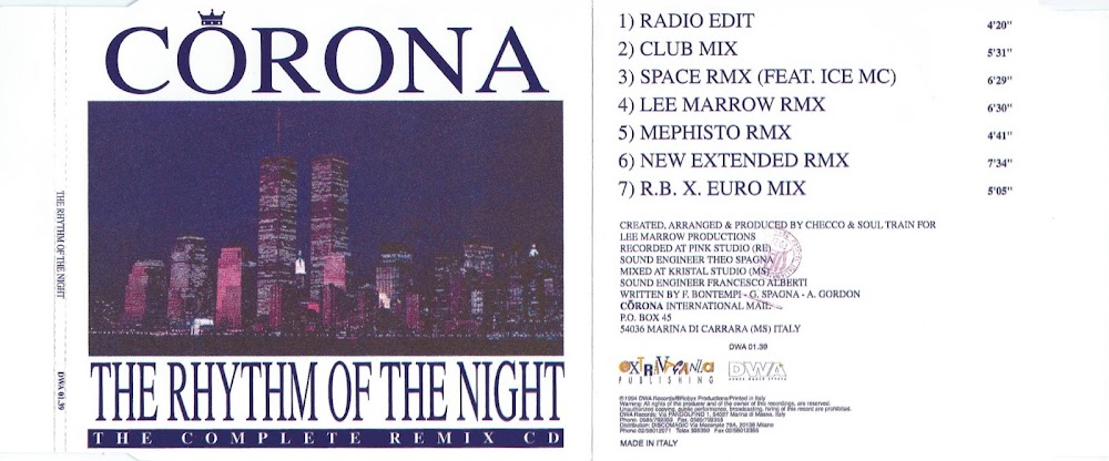 I m not sure why. The year 1994 she debut with the rhythm of the night which stayed number one in the top ten italian charts for 13 consecutive weeks. The rhythm of the night club groove extended rmx. Corona ice mc the rhythm of the night think about the way label.