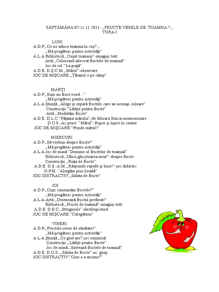 Proiect De Lecţie Cos Cu Fructe Toamna
