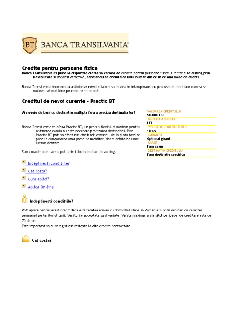 Sau 0264 308 028 sau te asteptam in orice unitate bt. Iunie 23 2020 oferte nebancare niciun comentariu daca nu stiti deja bt este divizia nebancara a marelui grup financiar din care face parte si banca transilvania. Cu alte cuvinte e destul de greu de gasit un credit de nevoi personale fara conditii suplimentare pentru romanii din strainatate in 2020. Credit bancar acte necesare care sunt actele necesare pentru accesarea unui credit bancar.