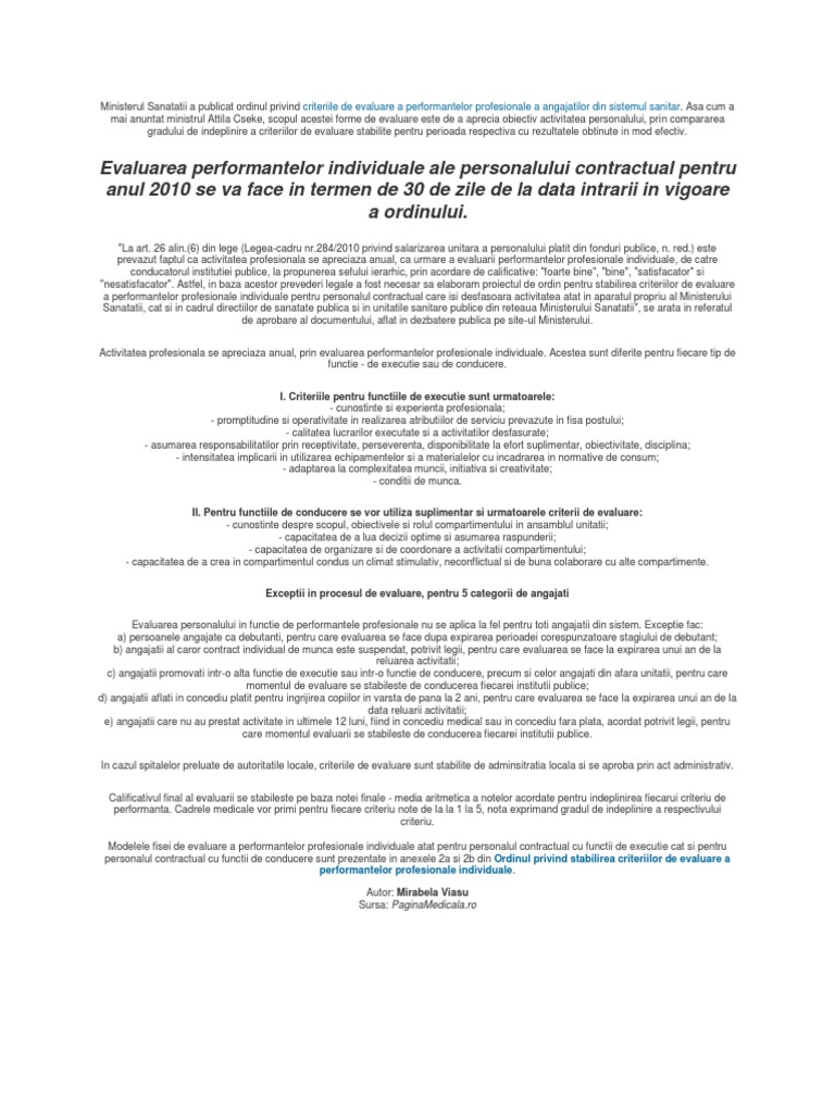 Criteriile De Evaluare A Angajatilor Din Sistemul Sanitar