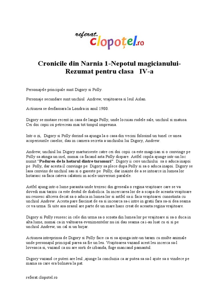în narnia unele animale pot vorbi deoarece acolo trăiesc făpturi mitice iar magia este un lucru obișnuit. Rezumat cronicile din narnia mai jos o sa aveti mai multe rezultate pentru cautarea rezumat cronicile din narnia. Prin urmare polly și digory ajung să petreacă o mare parte din timp împreună. Rezumat cronicile din narnia volumul 2 mai jos o sa aveti mai multe rezultate pentru cautarea rezumat cronicile din narnia volumul 2.