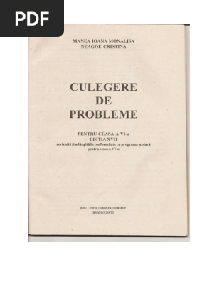 Culegere De Probleme Matematica Pentru Clasa A Vi A Puisorul Cartea Ta Ro